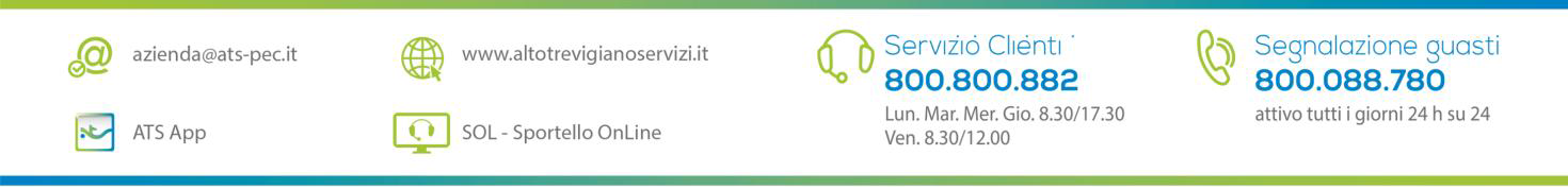 L'Alto Trevigiano Servizi comunica che è iniziata la periodica attività di rilevazione delle letture dei contatori acquedotto nel territorio comunale, con affidamento alla ditta CENTRO SERVIZI ASSOCIATI COOPERATIVA SOCIALE - CSA di San Vendemiano (TV). L’attività durerà dalle 2 alle 4 settimane, a seconda del numero utenze e delle condizioni meteorologiche.