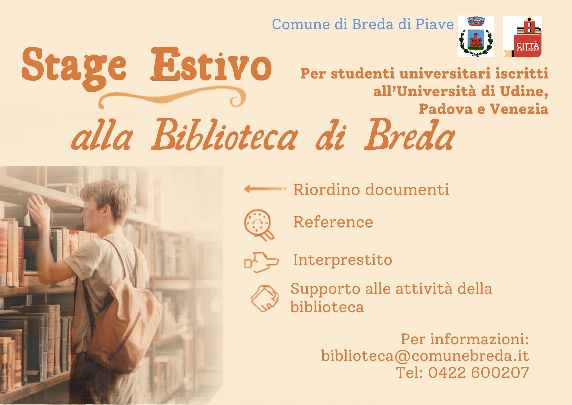Il Comune di Breda offre uno stage, per il periodo estivo, per la biblioteca comunale.