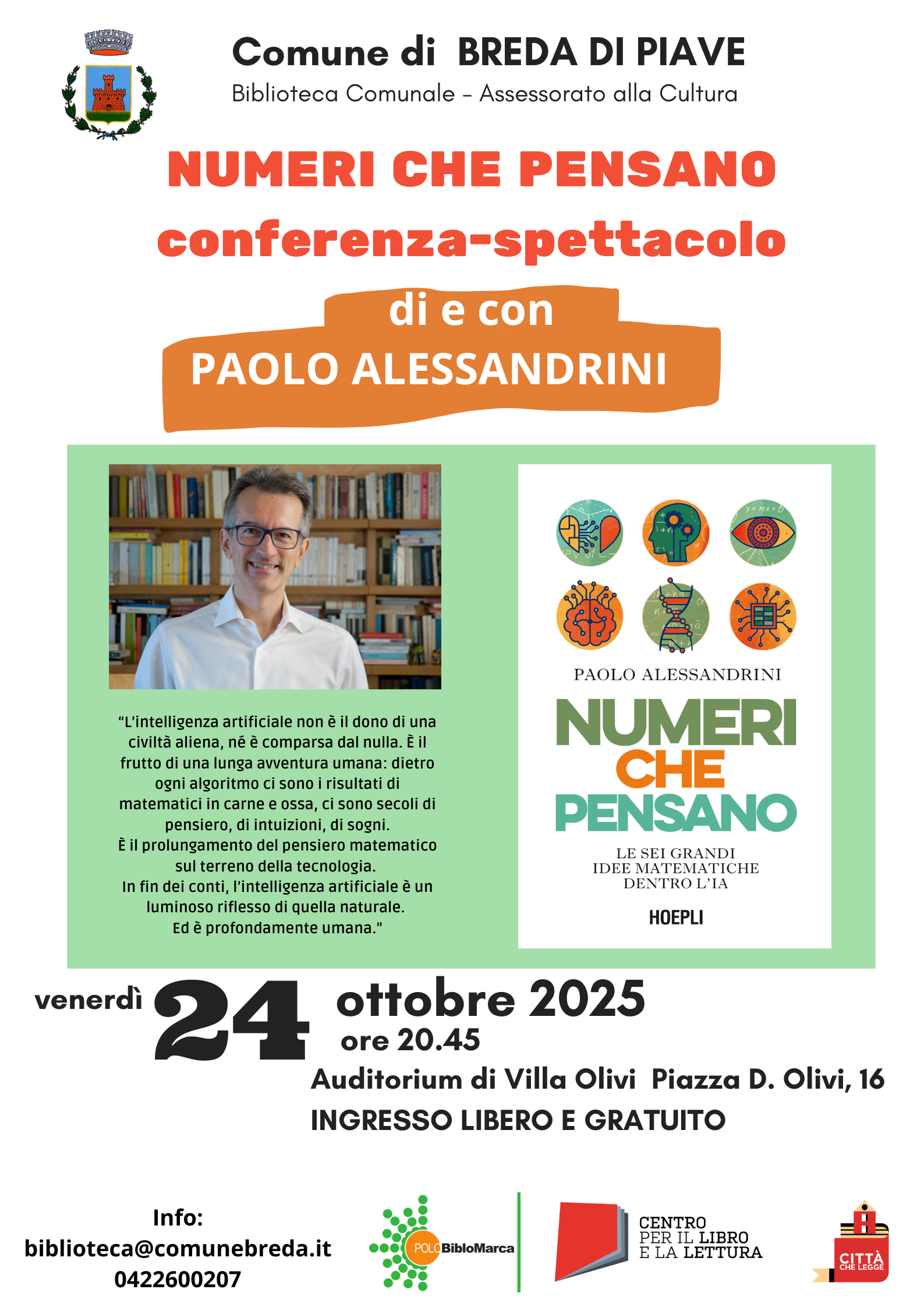 Venerdì 24 ottobre 2025 uscirà il nuovo libro del nostro concittadino Paolo Alessandrini che, la sera stessa, alle 20.45, terrà una conferenza-spettacolo di presentazione in Villa Olivi.