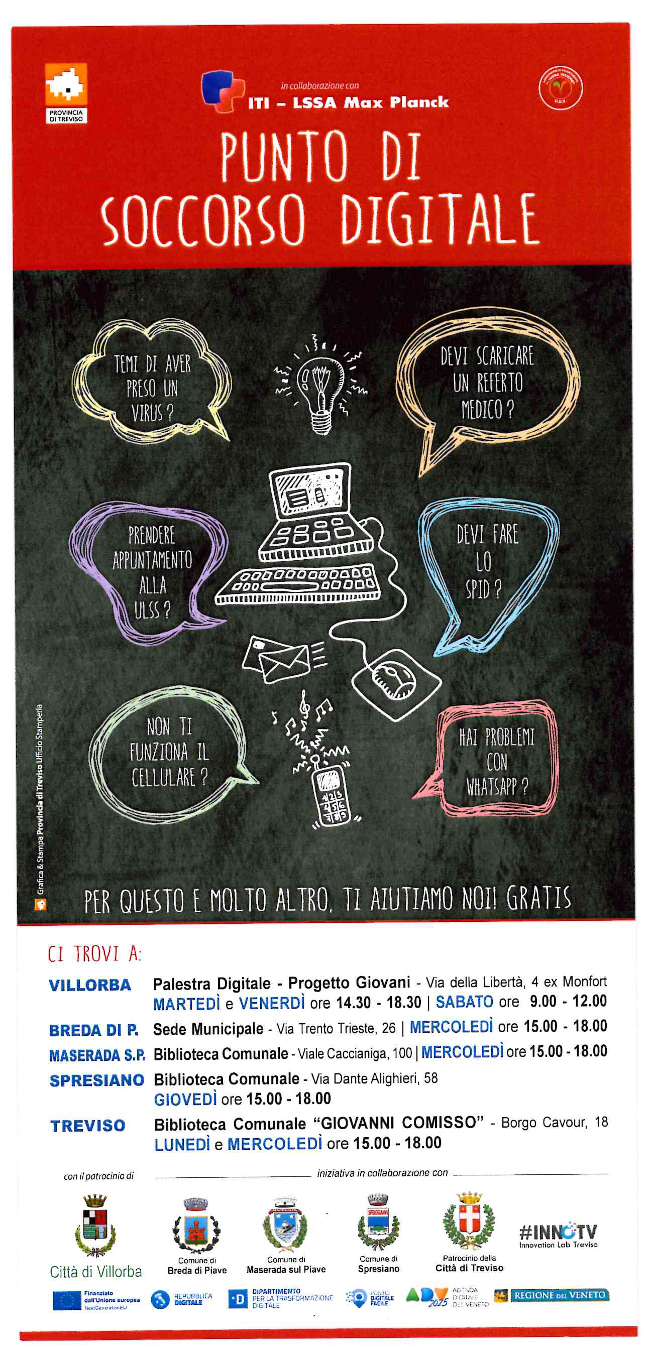 L’accesso ai “Punti di Soccorso Digitali” è libero e gratuito.